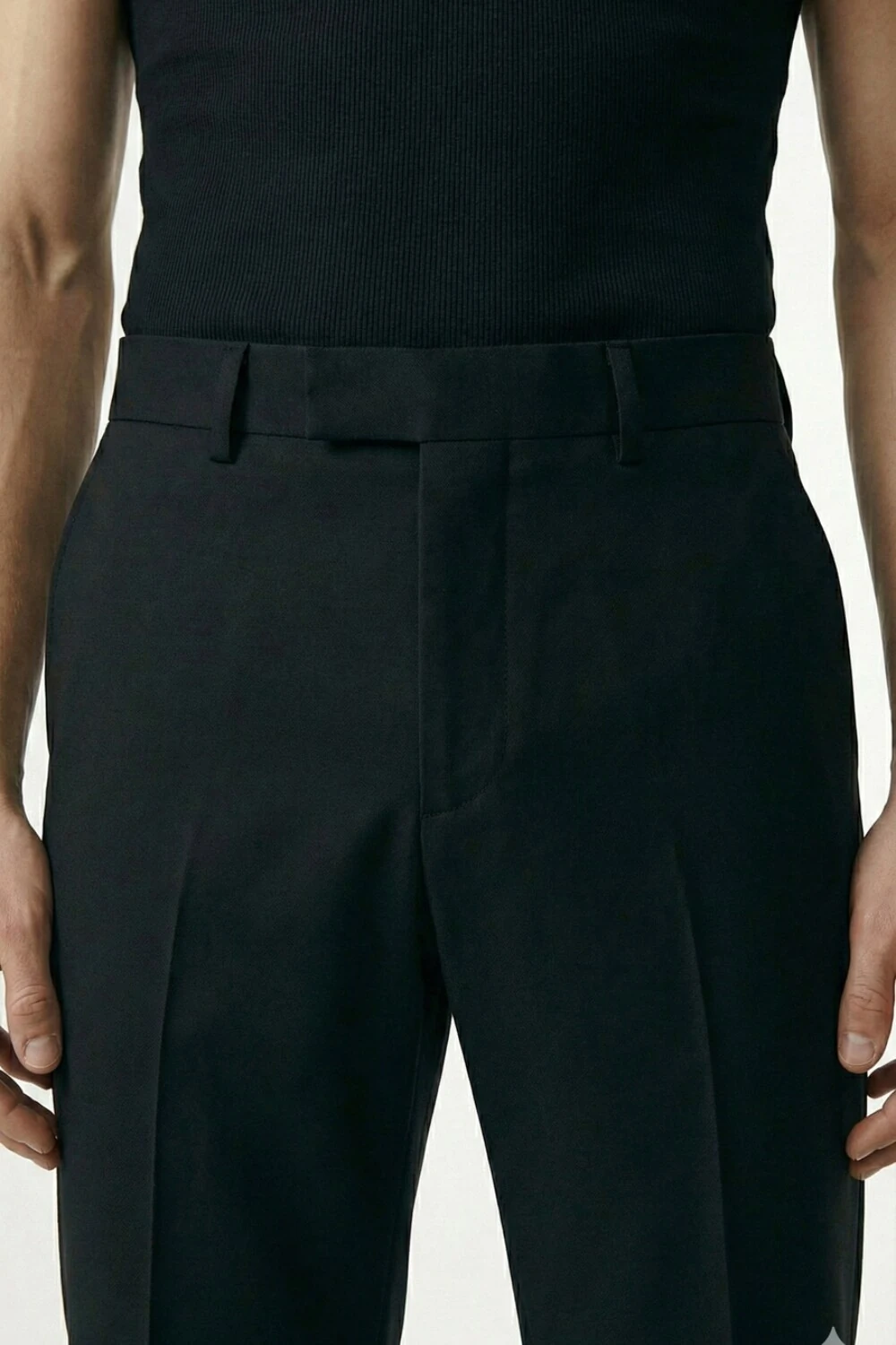 Calça confeccionada em alfaiataria preta, com cintura alta, modelagem reta e caimento impecável.