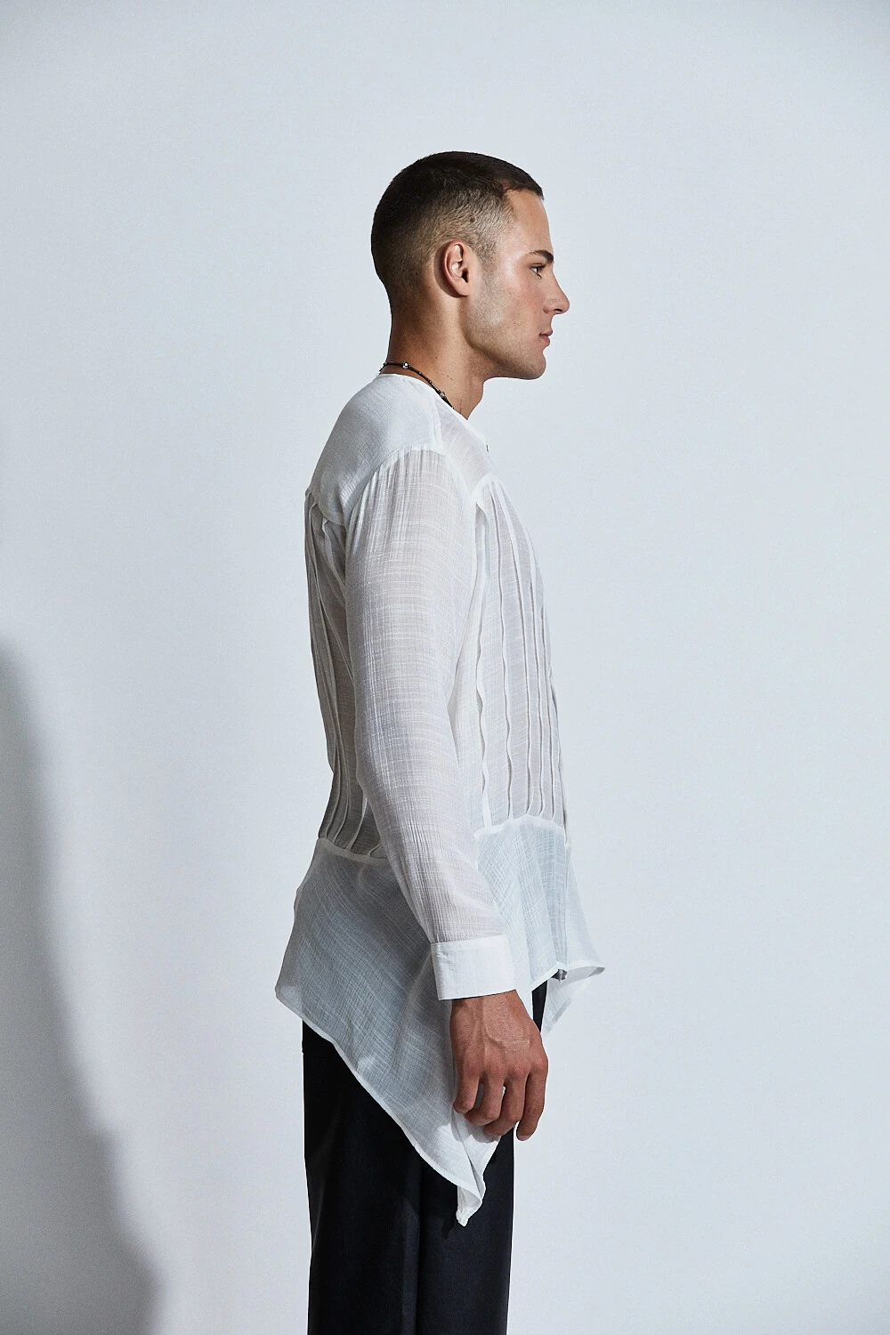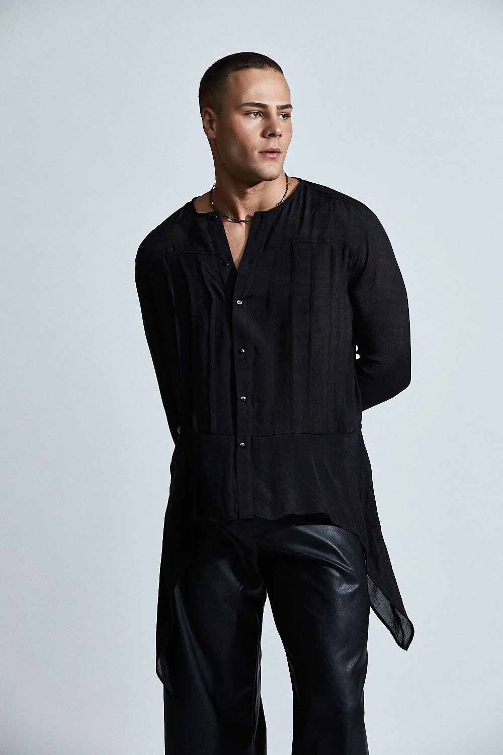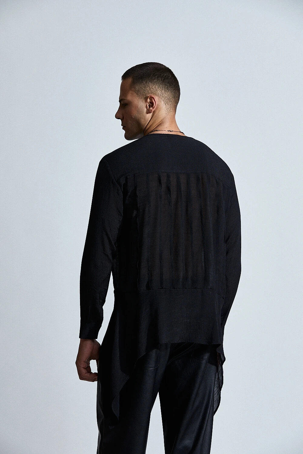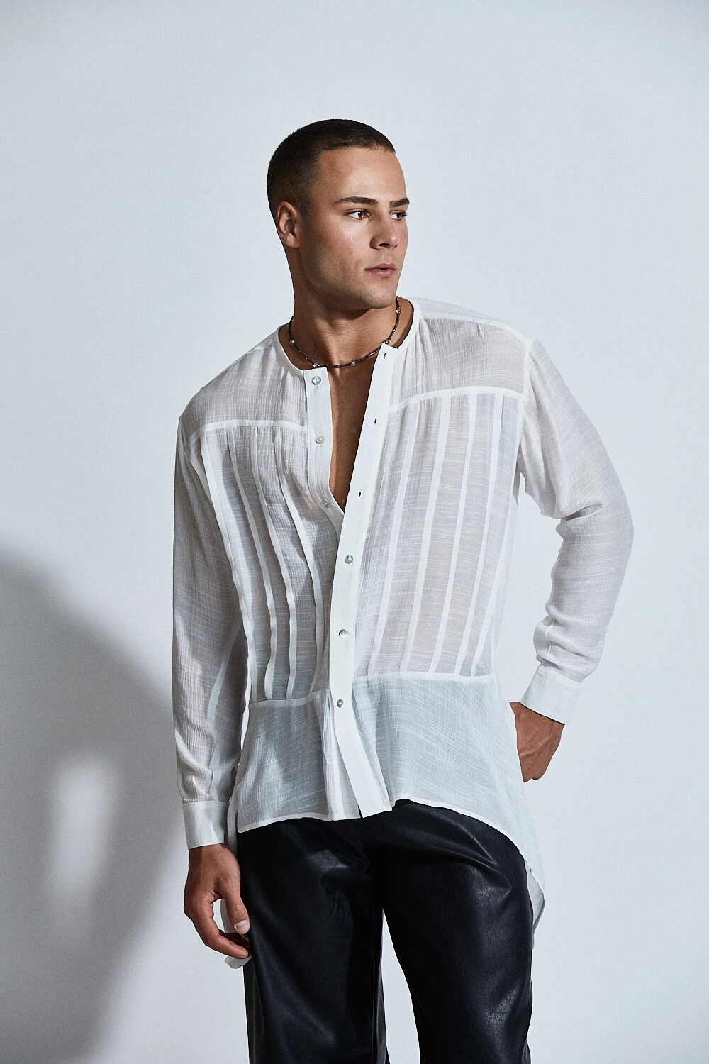 A camisa Orpheus Rebirth revela uma sensualidade mais sutil, onde o movimento e a leveza conduzem o olhar.
