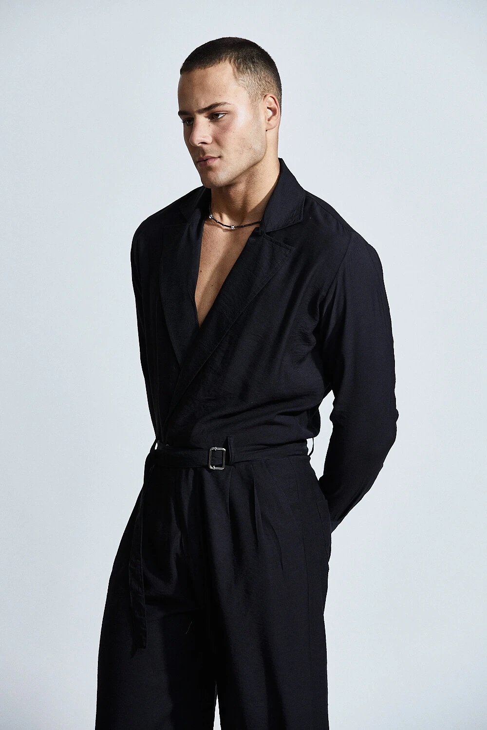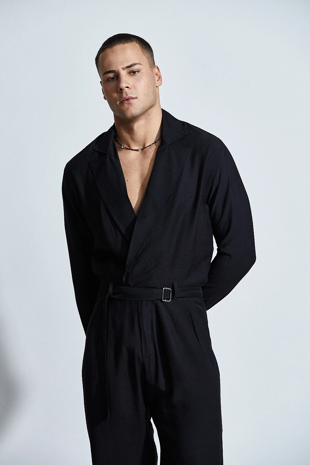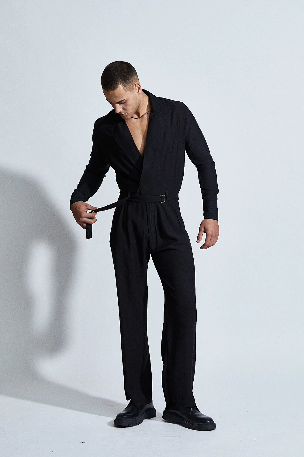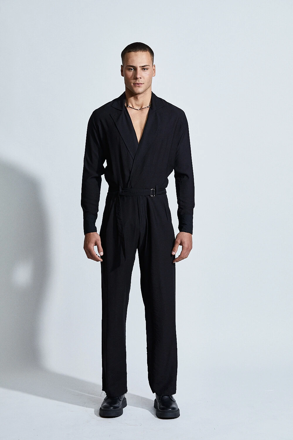 O Macacão Hades Rebirth traduz a elegância sombria da alfaiataria em uma peça de presença absoluta.