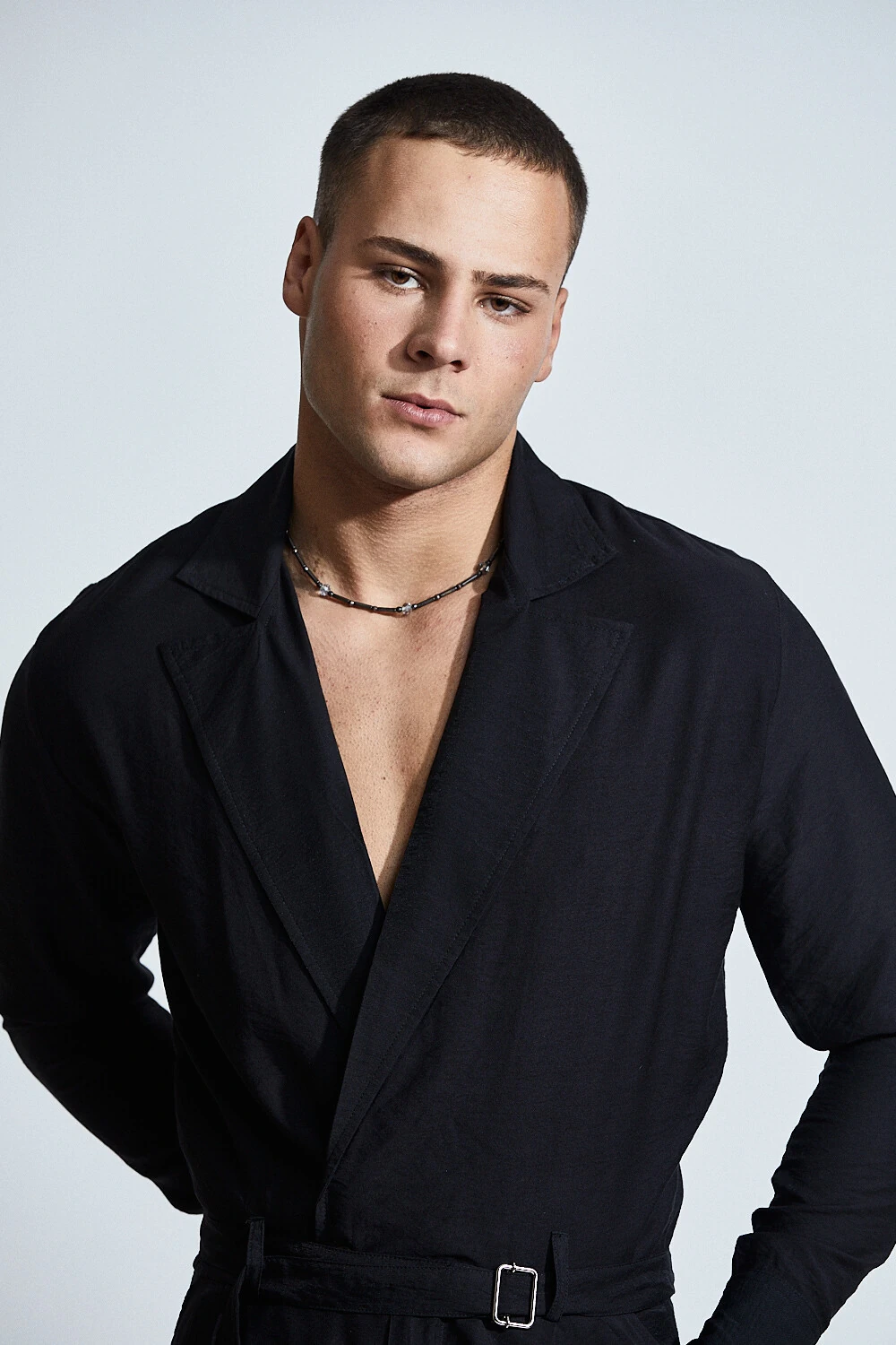 A modelagem reta alonga o corpo e reforça uma estética minimalista, forte e atemporal — onde menos é impacto.