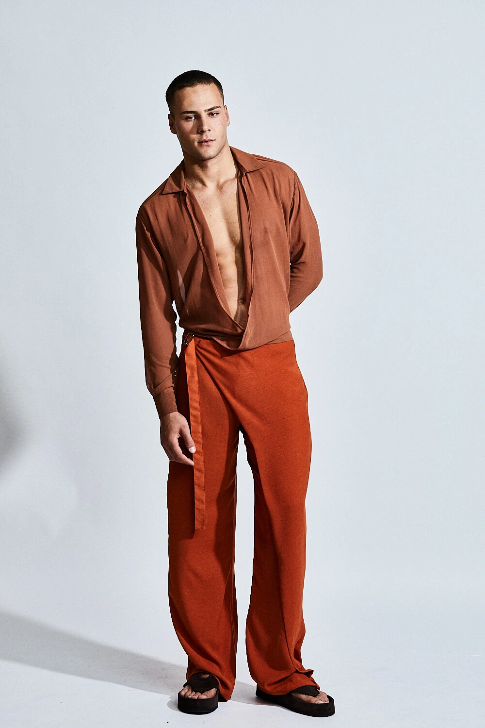 A Calça Hélios Rebirth traduz elegância contemporânea com fluidez e presença.