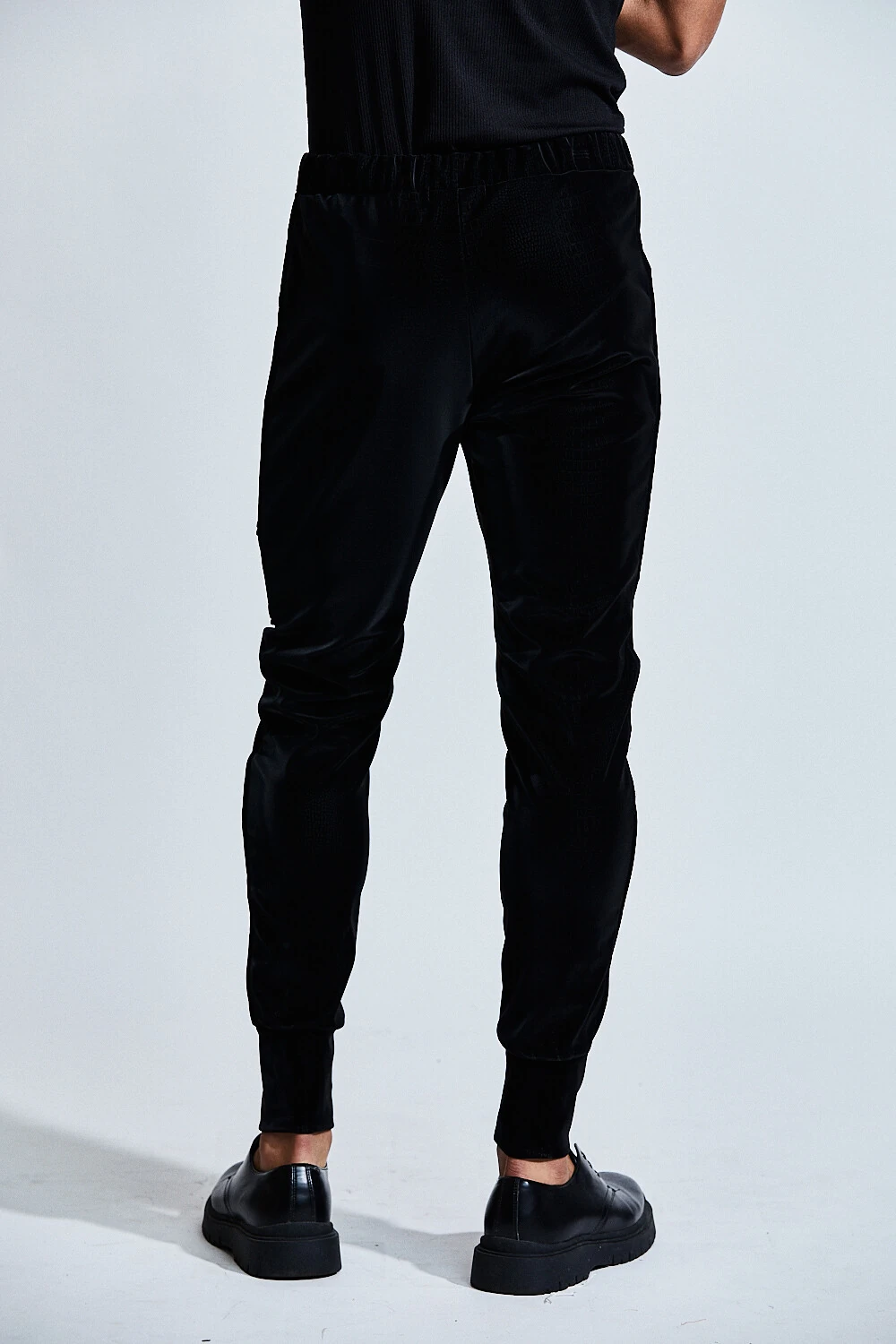 A modelagem jogger traz conforto aliado à estética urbana, enquanto o acabamento texturizado adiciona profundidade e exclusividade à peça.