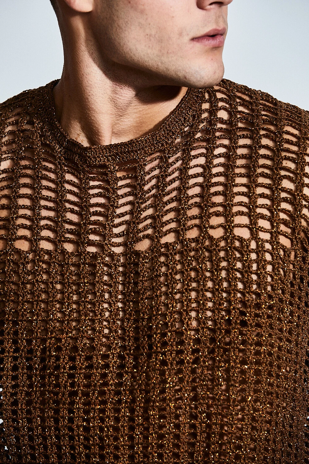 Confeccionada em crochet de algodão com fios de lurex, apresenta textura vazada que revela o corpo com elegância, enquanto o brilho sutil adiciona sofisticação à peça. A modelagem ampla com cava deslocada traz um visual contemporâneo e despojado, equilibrando conforto e estilo.