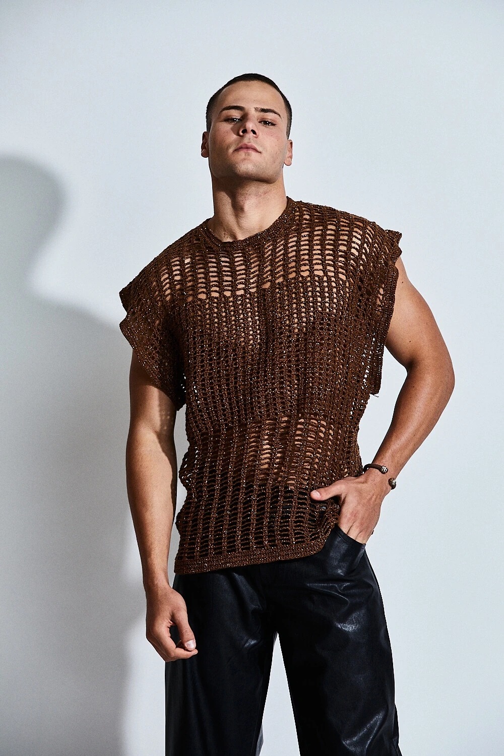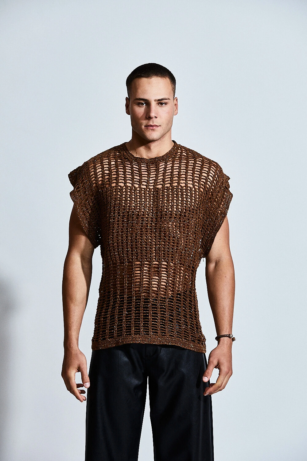 Ideal para composições versáteis — do beachwear ao urbano noturno — é uma peça que valoriza o corpo masculino com naturalidade e atitude.