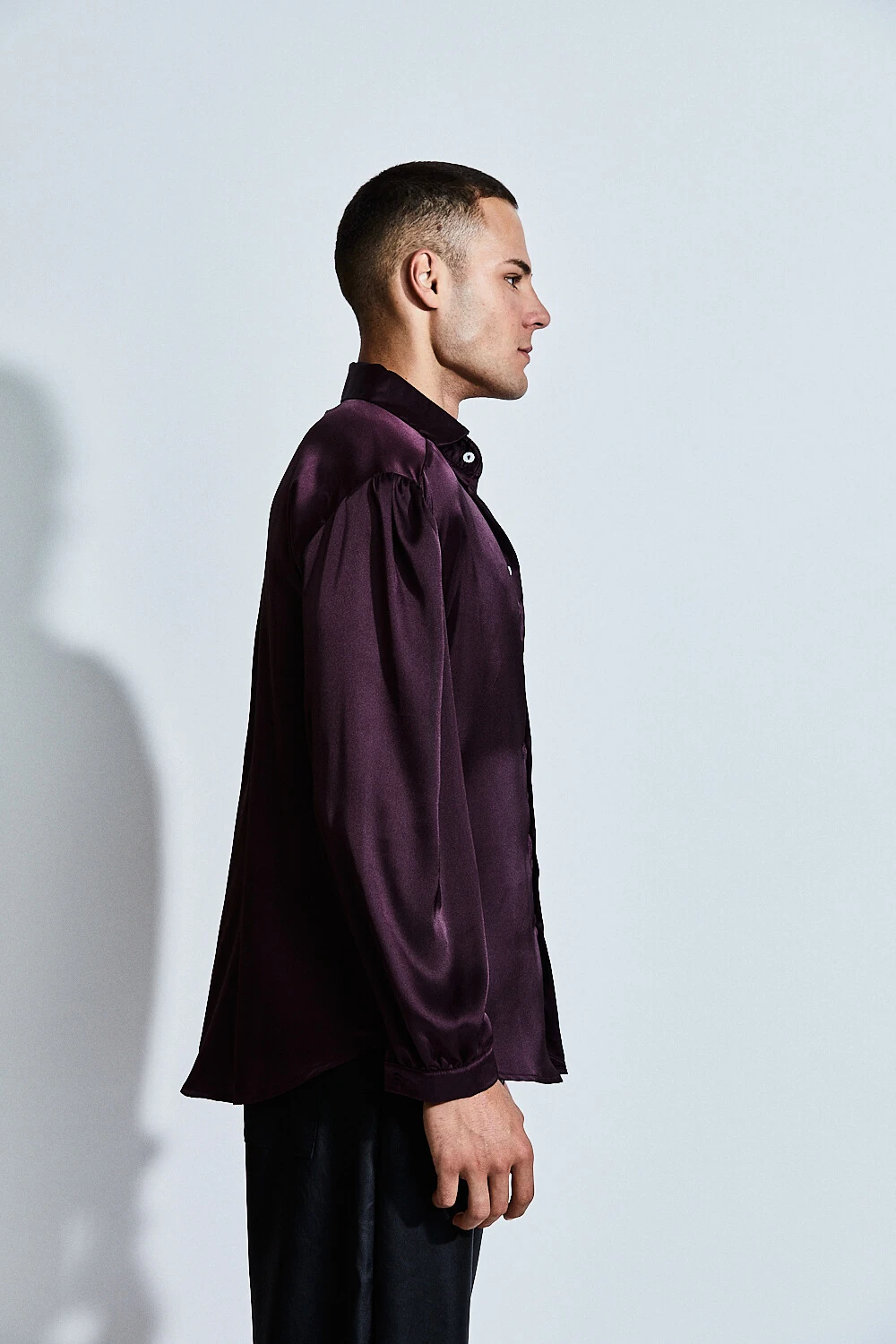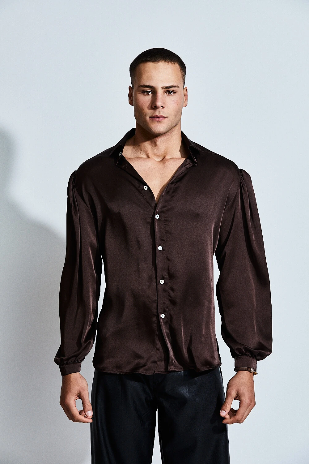 Confeccionada em tecido leve com toque acetinado, apresenta caimento fluido que acompanha o corpo com naturalidade, criando uma silhueta elegante e contemporânea. A modelagem ampla com mangas bufantes adiciona volume e dramaticidade na medida certa, enquanto os punhos ajustados trazem equilíbrio e refinamento.