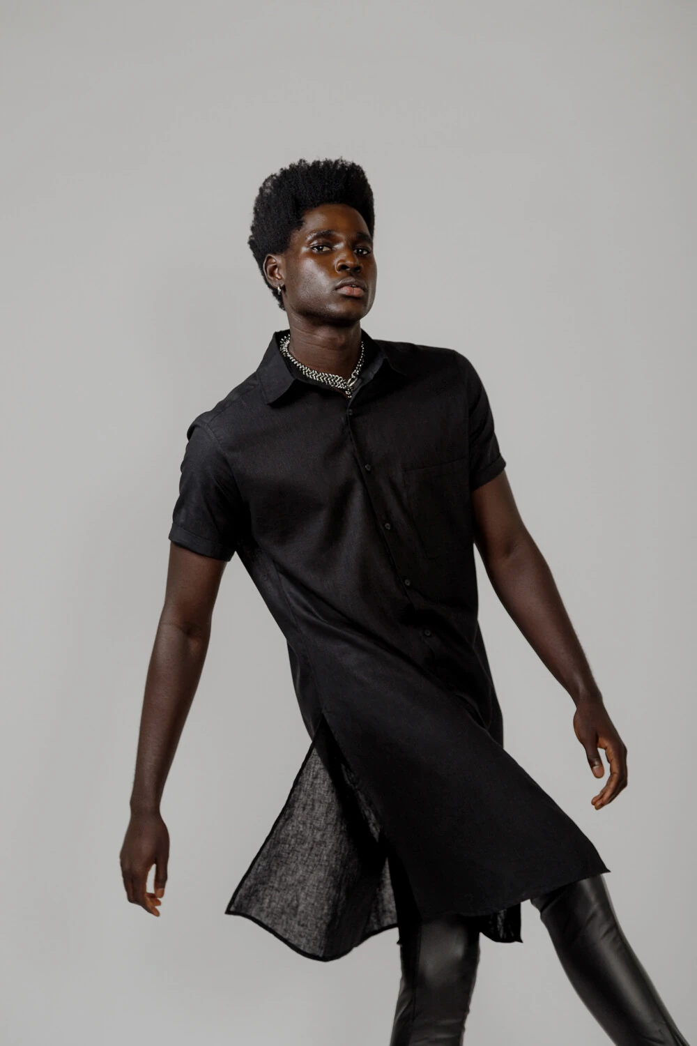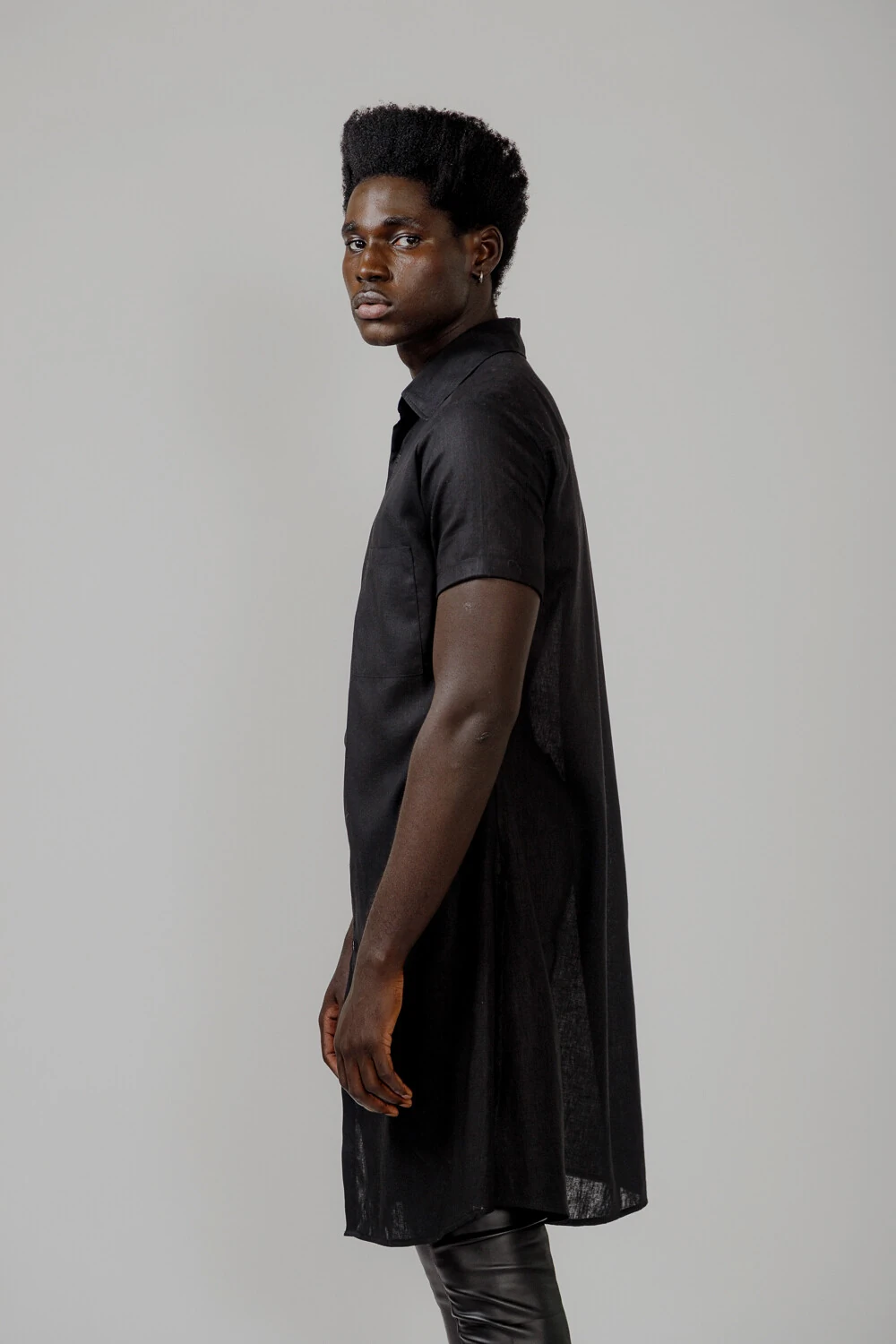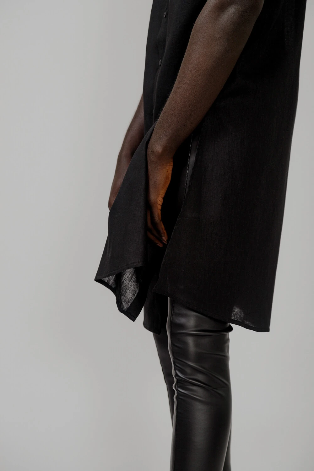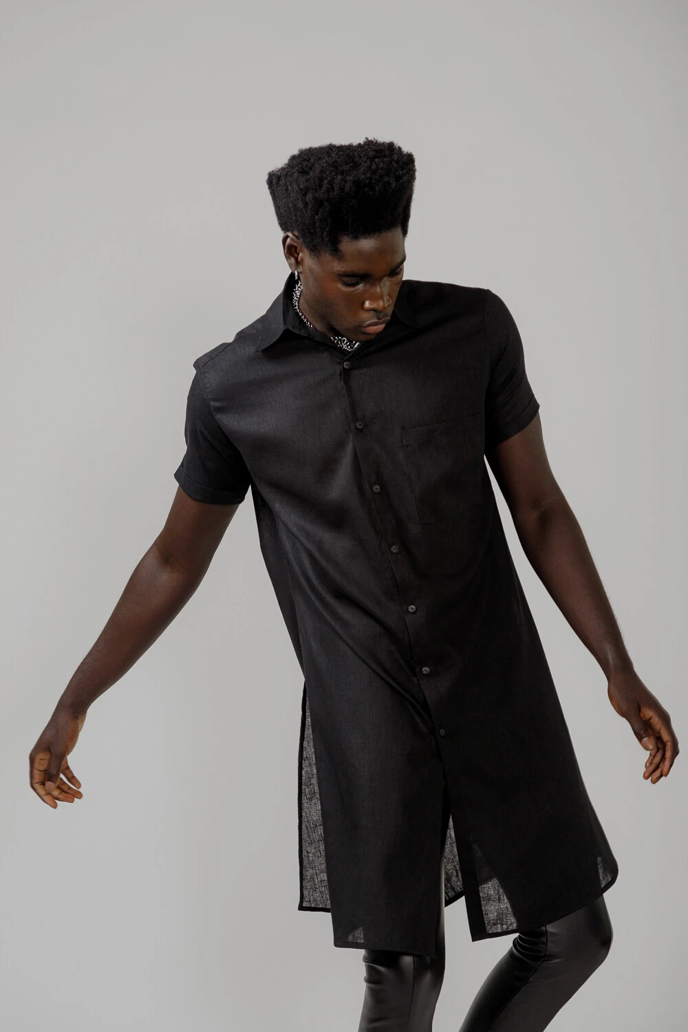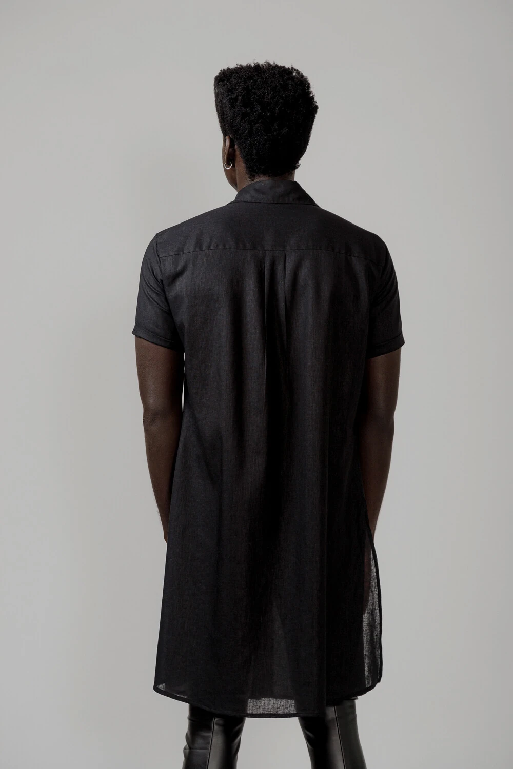 Camisa Longa confeccionada em fibra mista de Linho com Algodão.