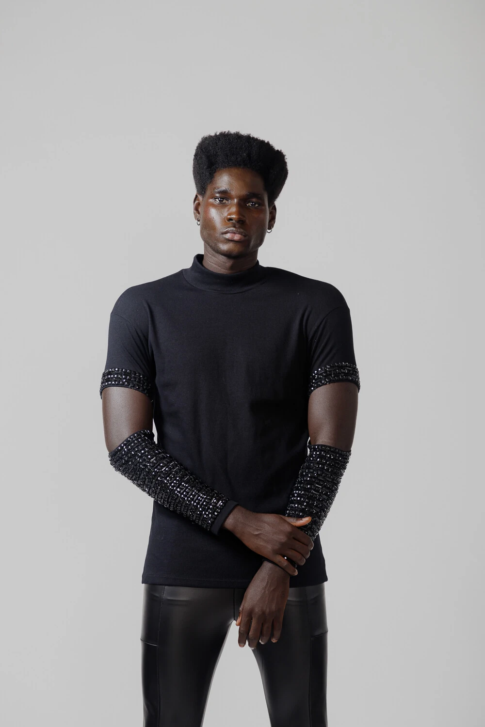 O modelo veste tamanho M . Ele mede 1.80 e pesa 75kg