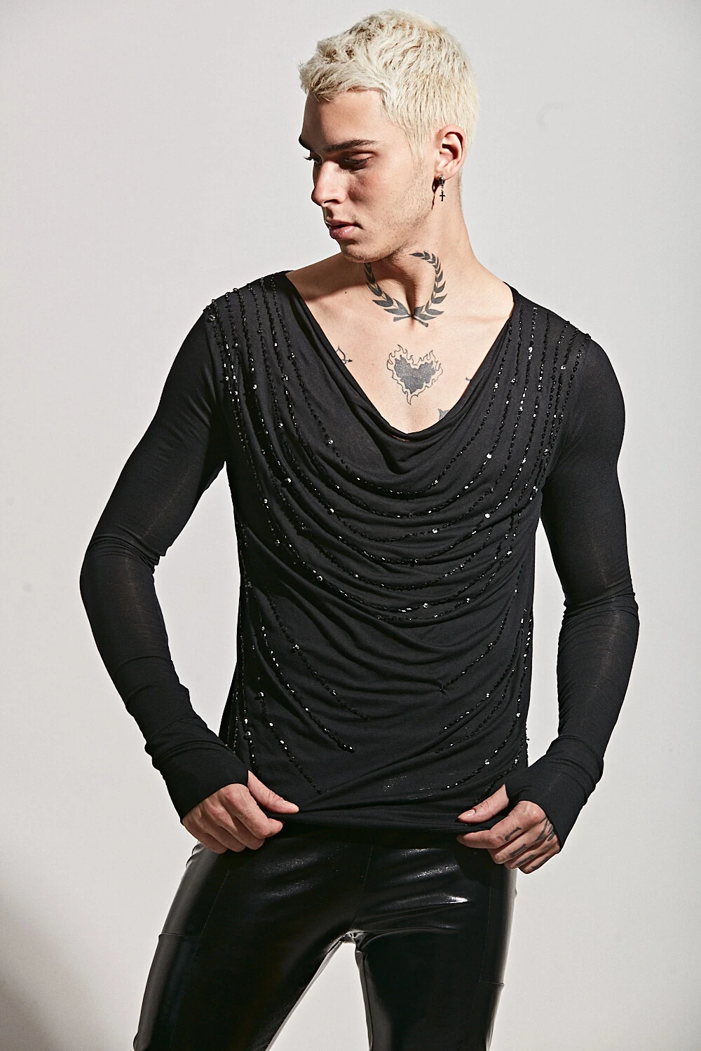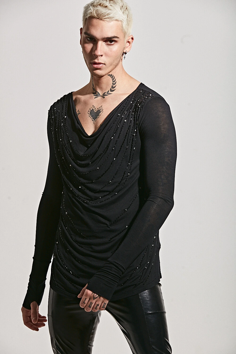 O modelo veste tamanho M . Ele mede 1.80m e pesa 75kg