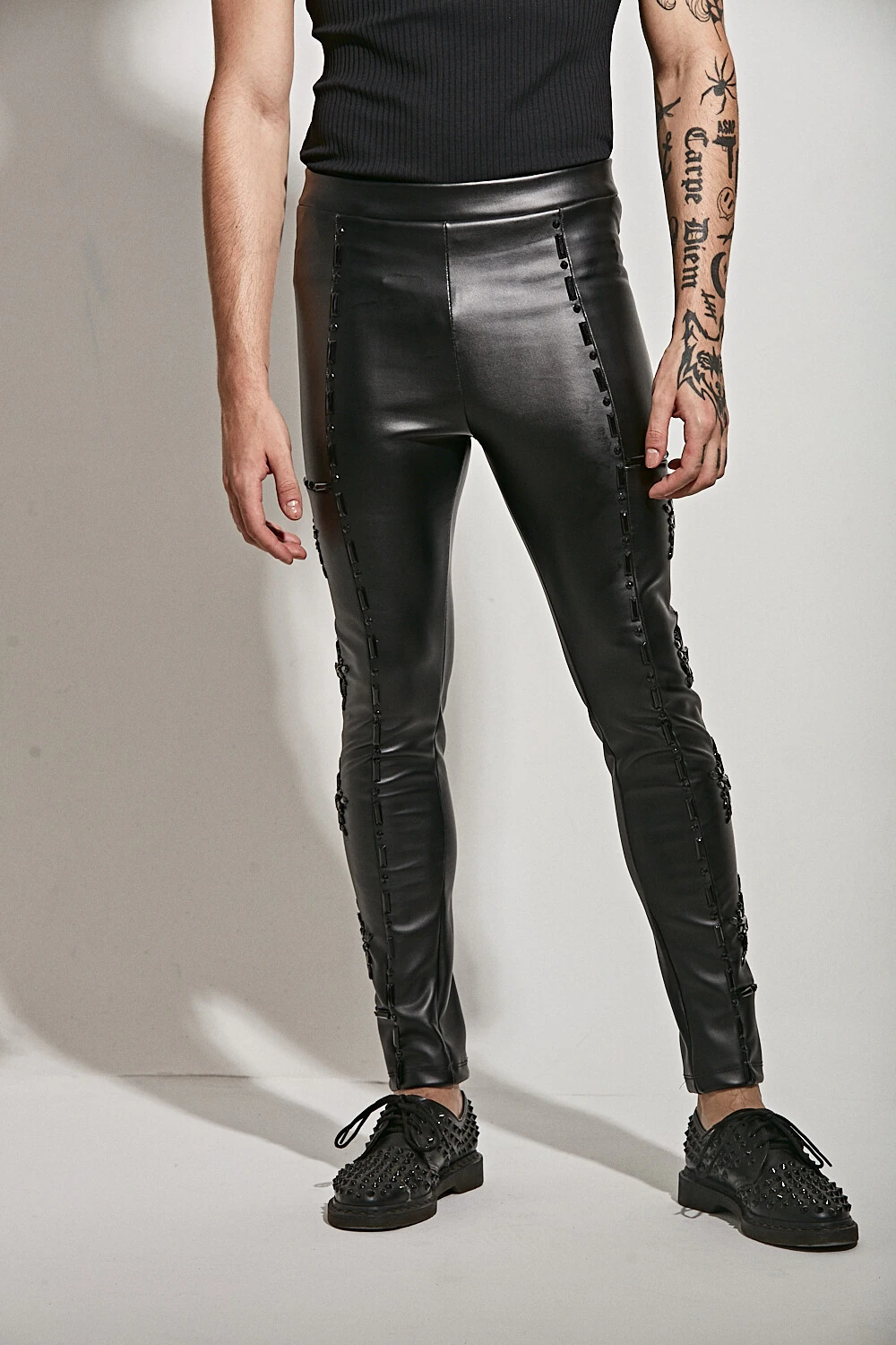 Nossa legging mais vendida, confeccionada em neoprene com brilho de couro, bordada manualmente com camafeus de cristais nas laterais .