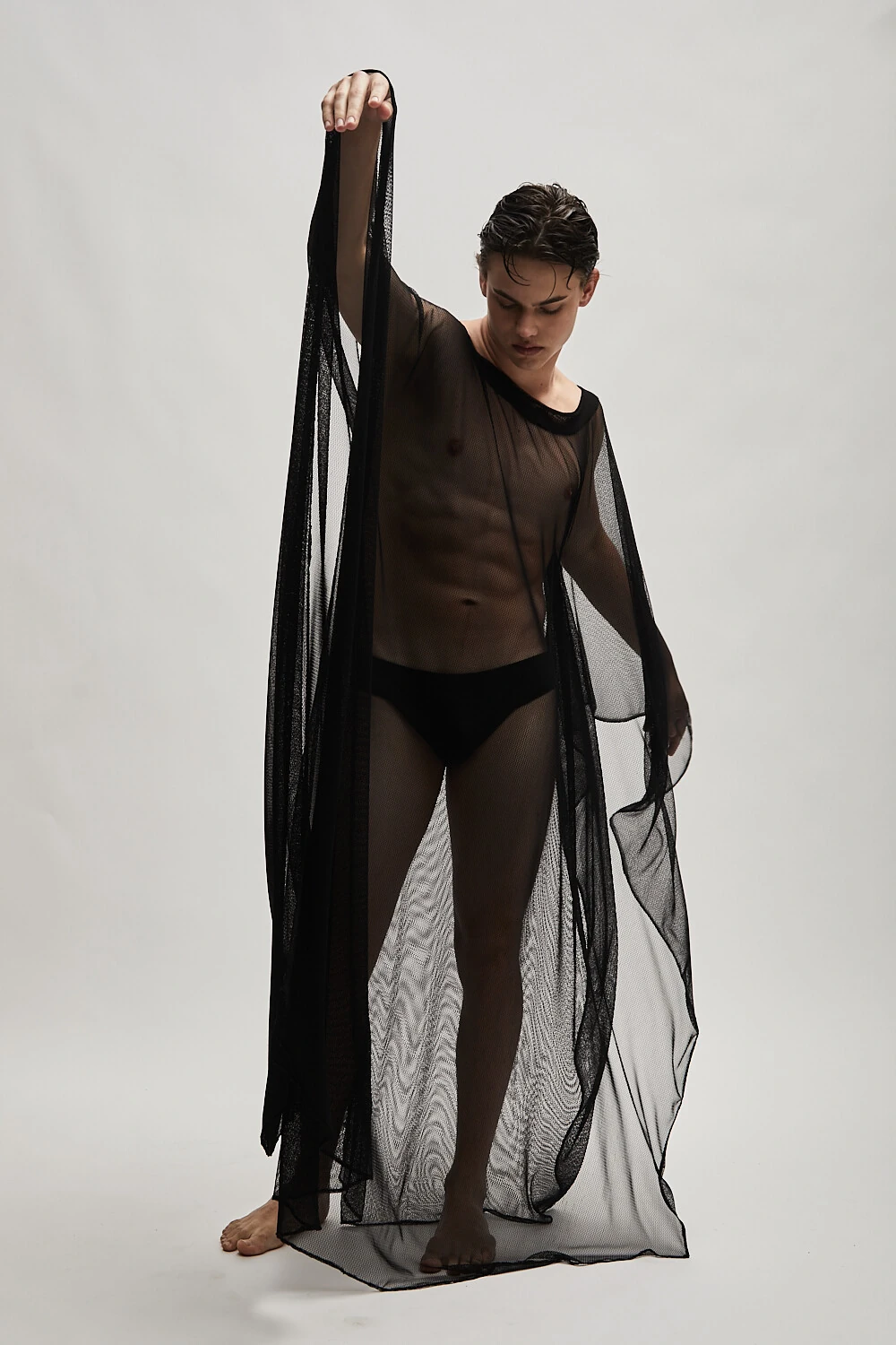 Um kaftan masculino exuberante, confeccionado em tule leve de poliamida, está disponível em duas cores deslumbrantes: gelo e preto. Esta peça combina conforto e estilo, perfeita para dias quentes ou como uma opção casual elegante. A sua versatilidade nas cores torna-o adequado para diversas ocasiões, enquanto o tule leve oferece um toque de sofisticação. Este kaftan é a escolha ideal para homens que desejam um visual moderno e fresco.