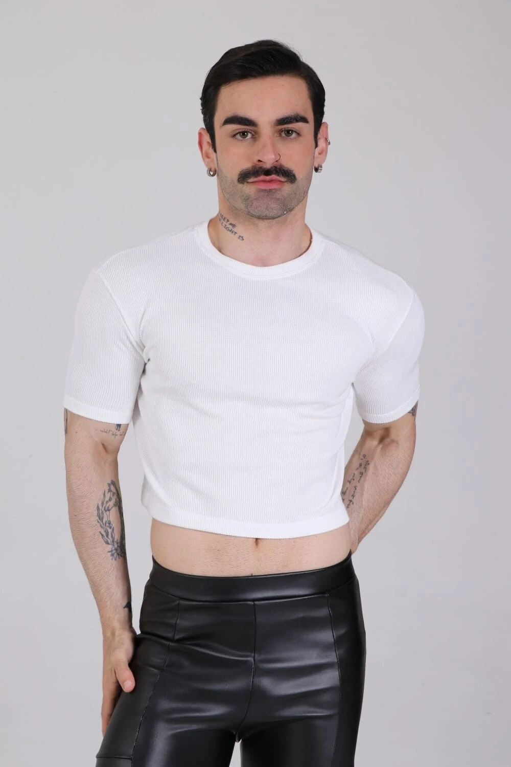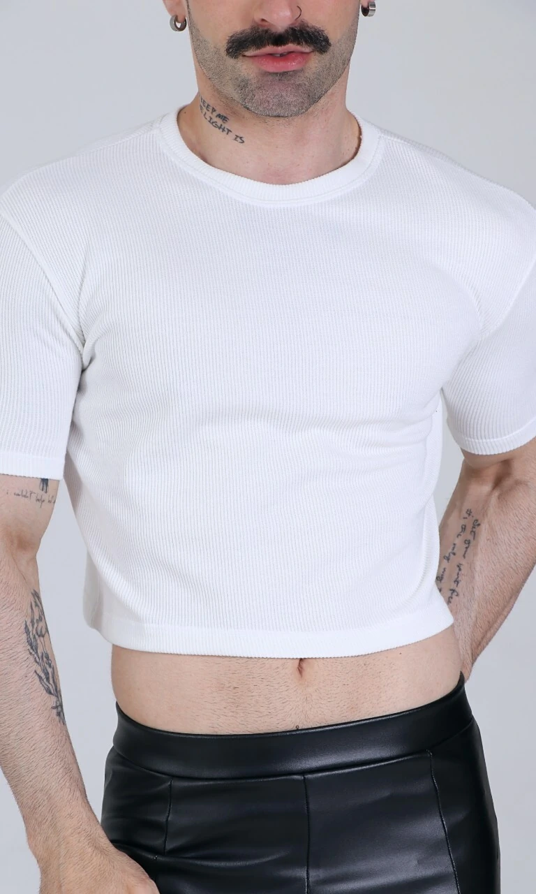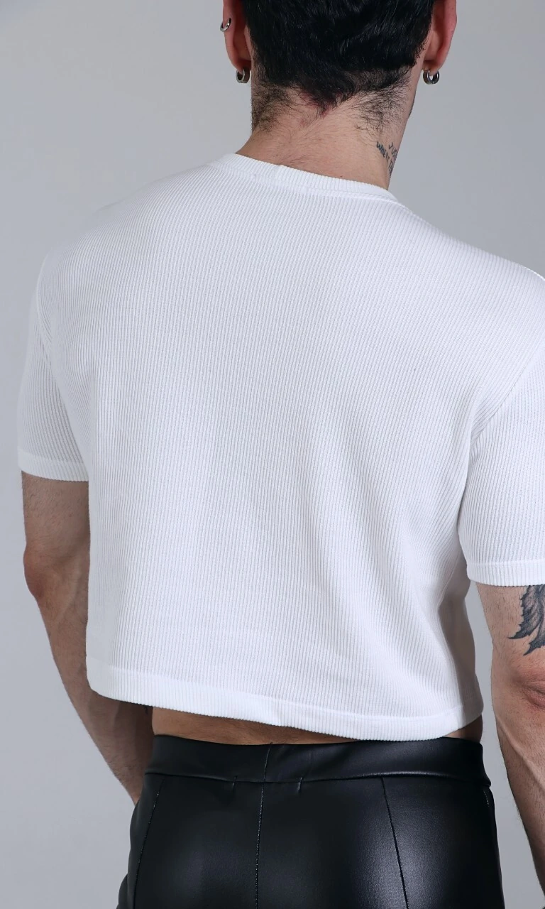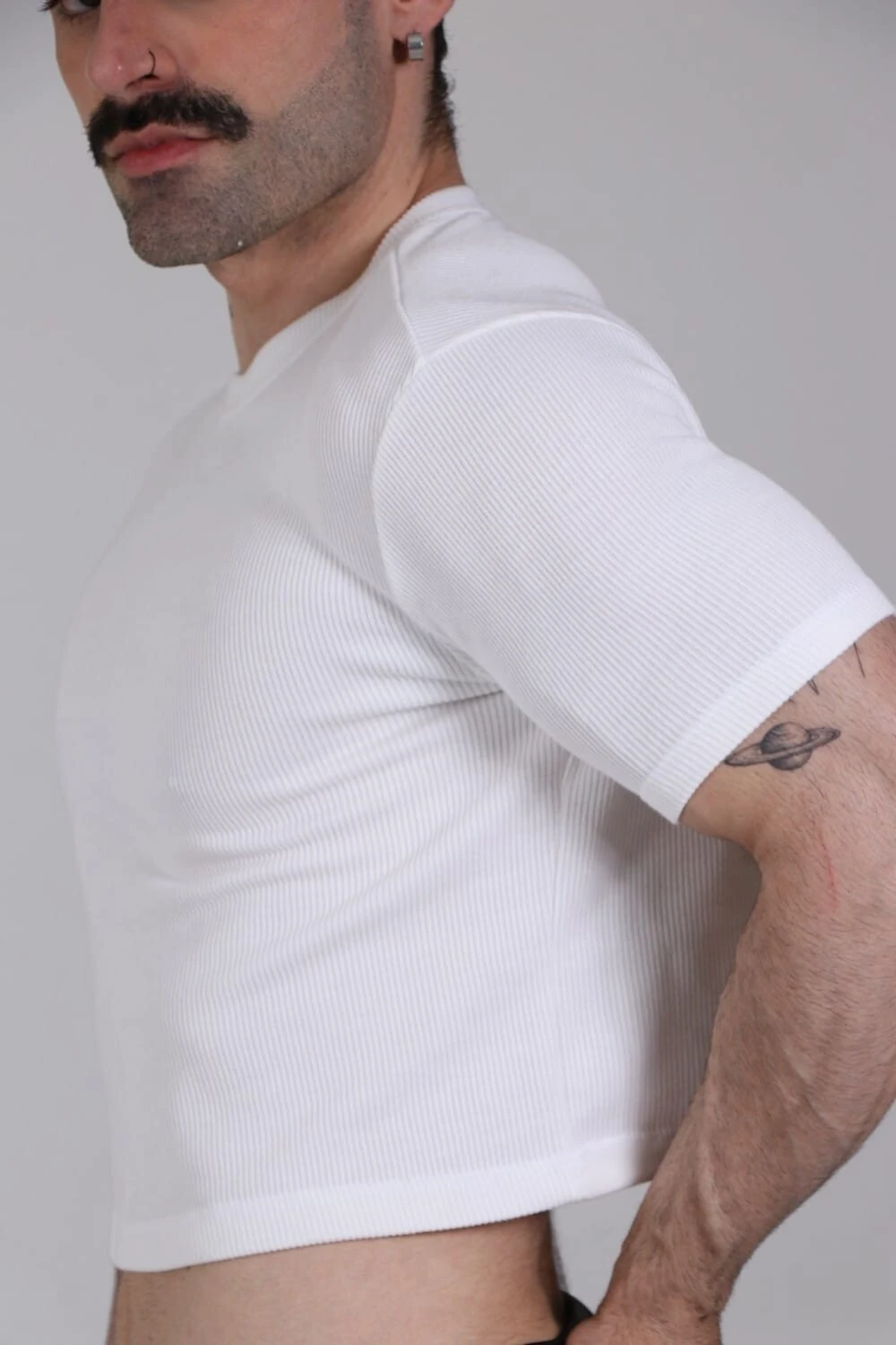 Camiseta com modelagem cropped confeccionada em malha premium 100%Algodão com decote careca e mangas curtas.