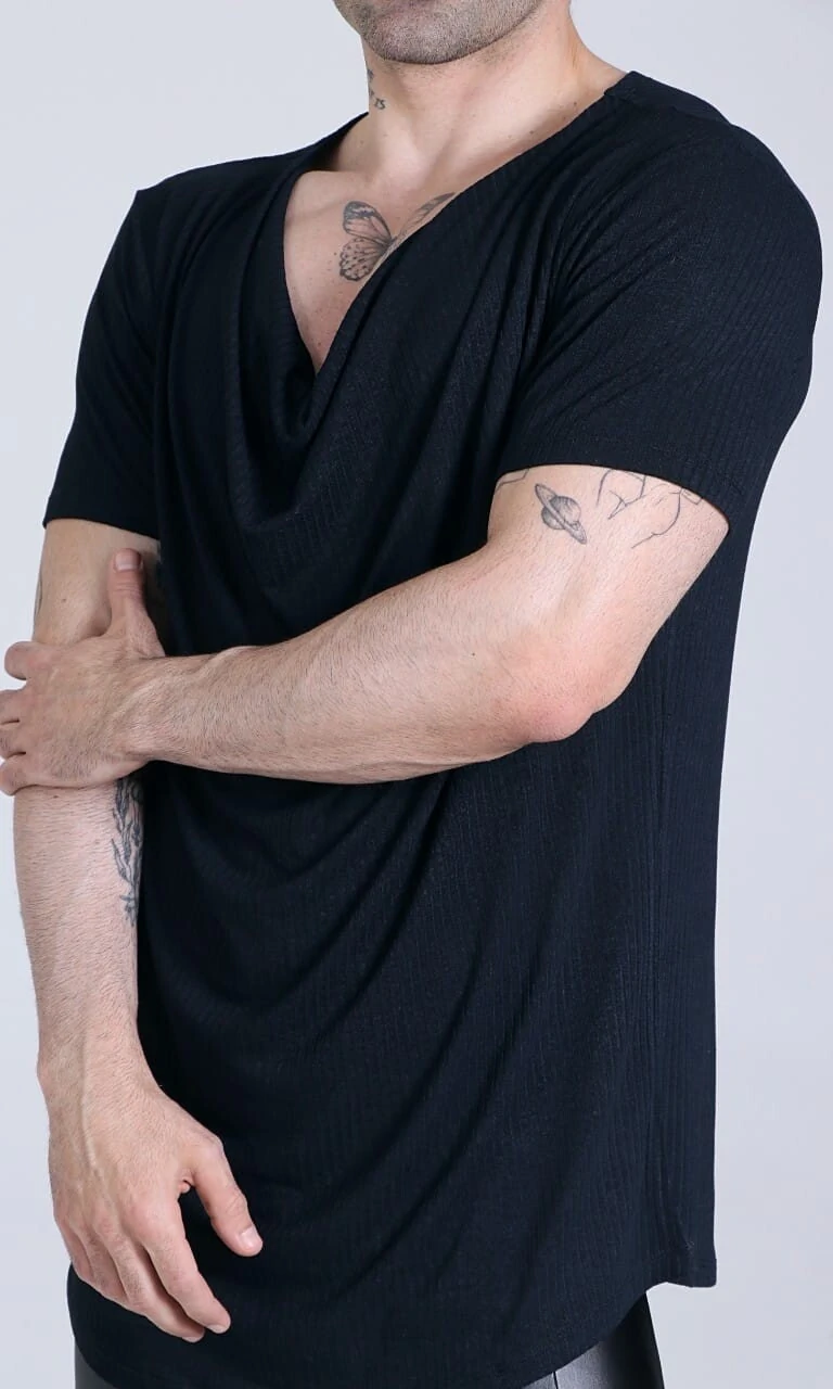 A Camiseta Morfeu é a união entre conforto e ousadia sofisticada. Com seu decote drapeado marcante e mangas curtas, ela traz leveza e sensualidade ao visual masculino, preservando a estética elegante da Synchron. Confeccionada em malha de toque macio e caimento perfeito, é uma peça versátil para composições modernas – do dia à noite, do casual refinado ao look noturno cheio de atitude.