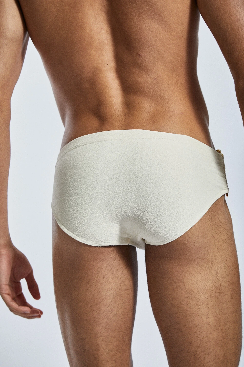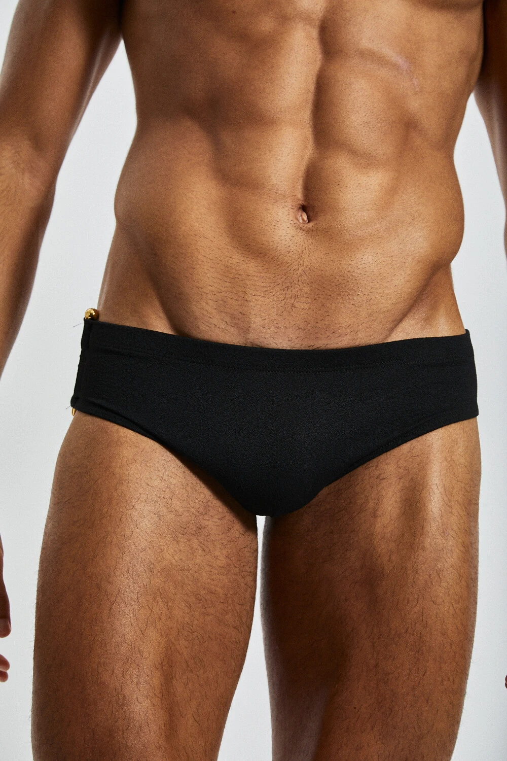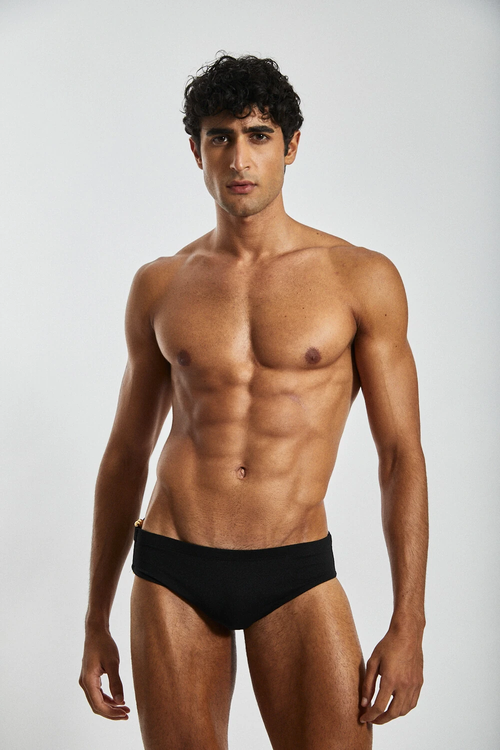 Com acabamento refinado e toque ousado, a Sunga Dourada Spikes se destaca pelo detalhe lateral com metais dourados em formato de spikes, conferindo um visual moderno e provocante. A modelagem justa valoriza o corpo com elegância e atitude.